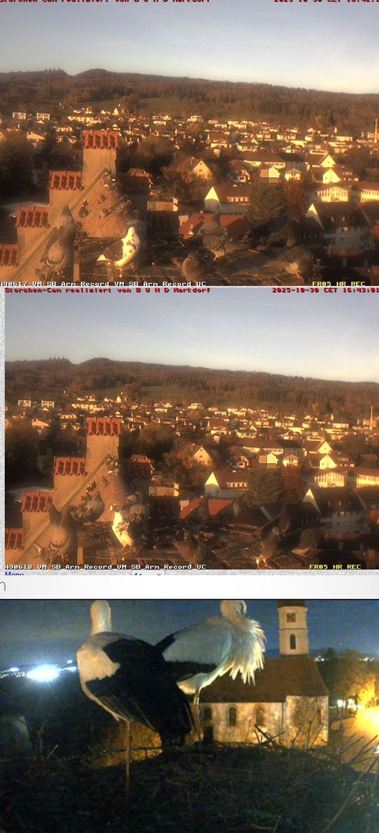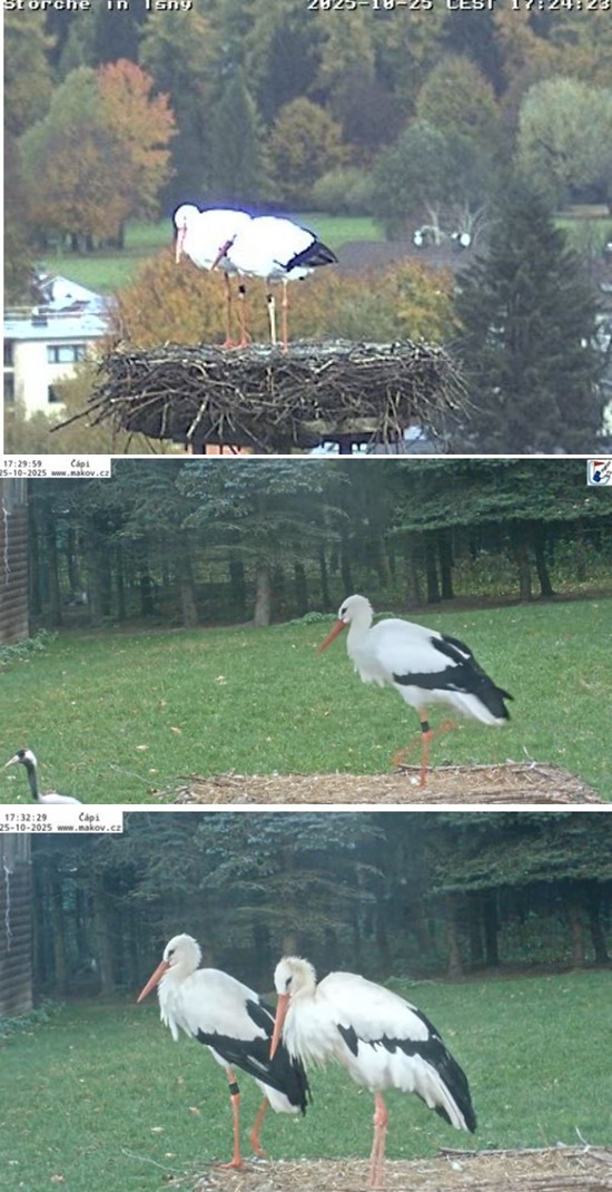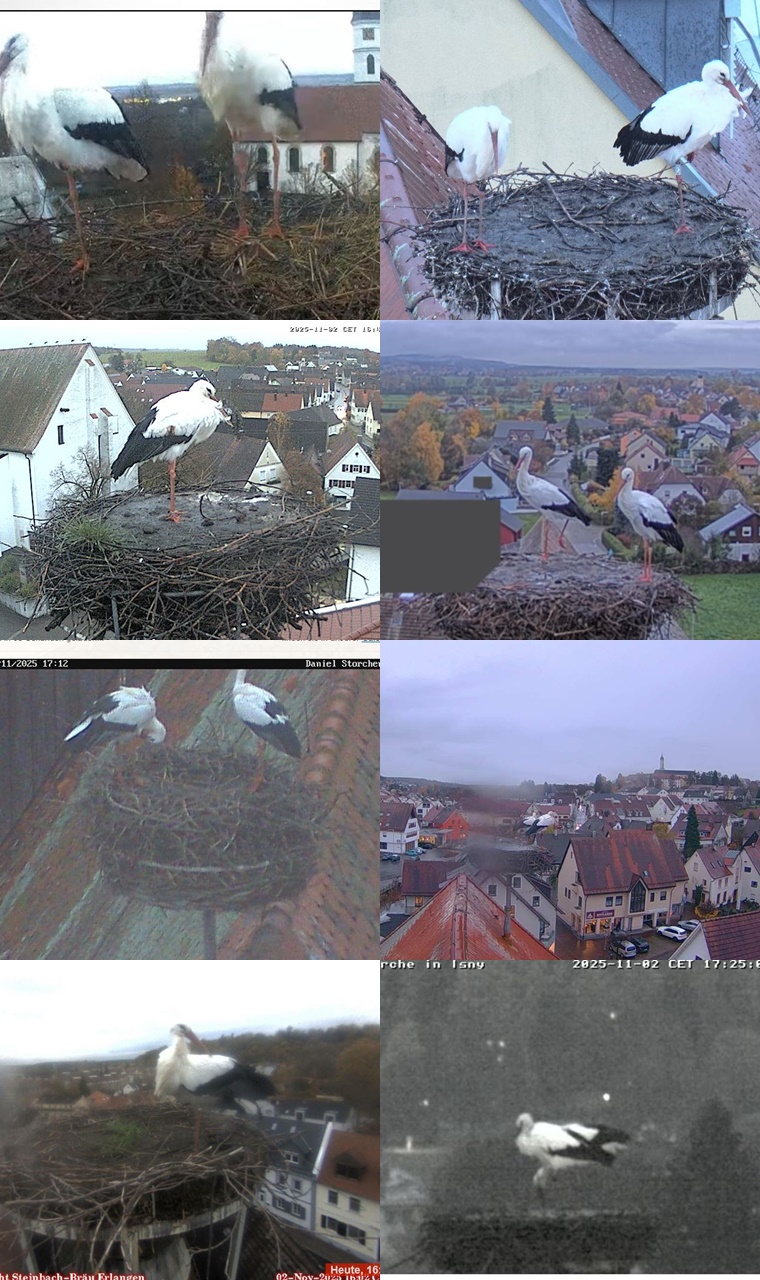 Die Altstörche in Bad Salzungen haben wieder Zeit für sich, die Jungstörche in Freilassing sind auch noch da, Fütterung in Petershagen.