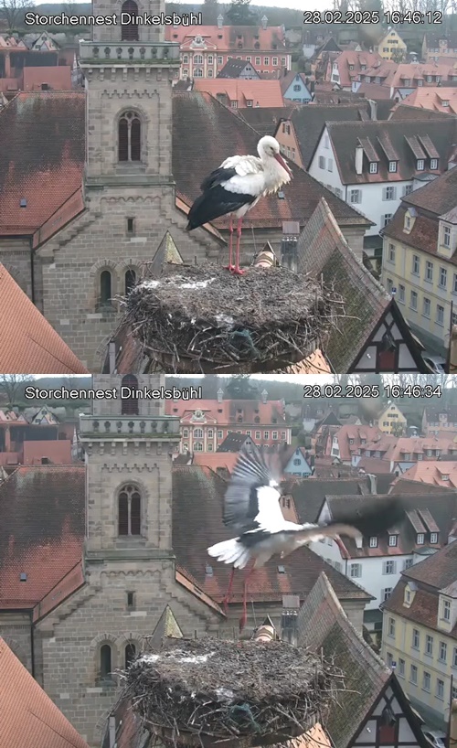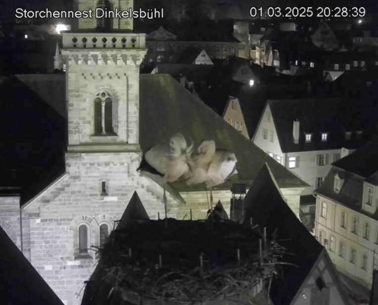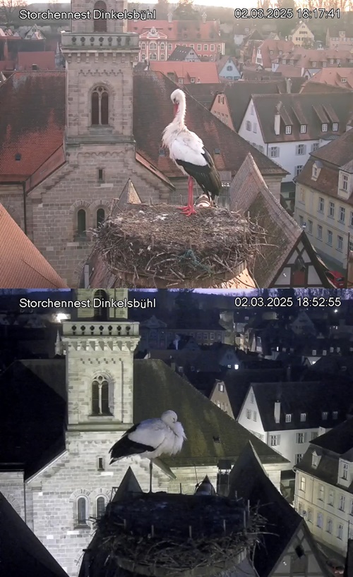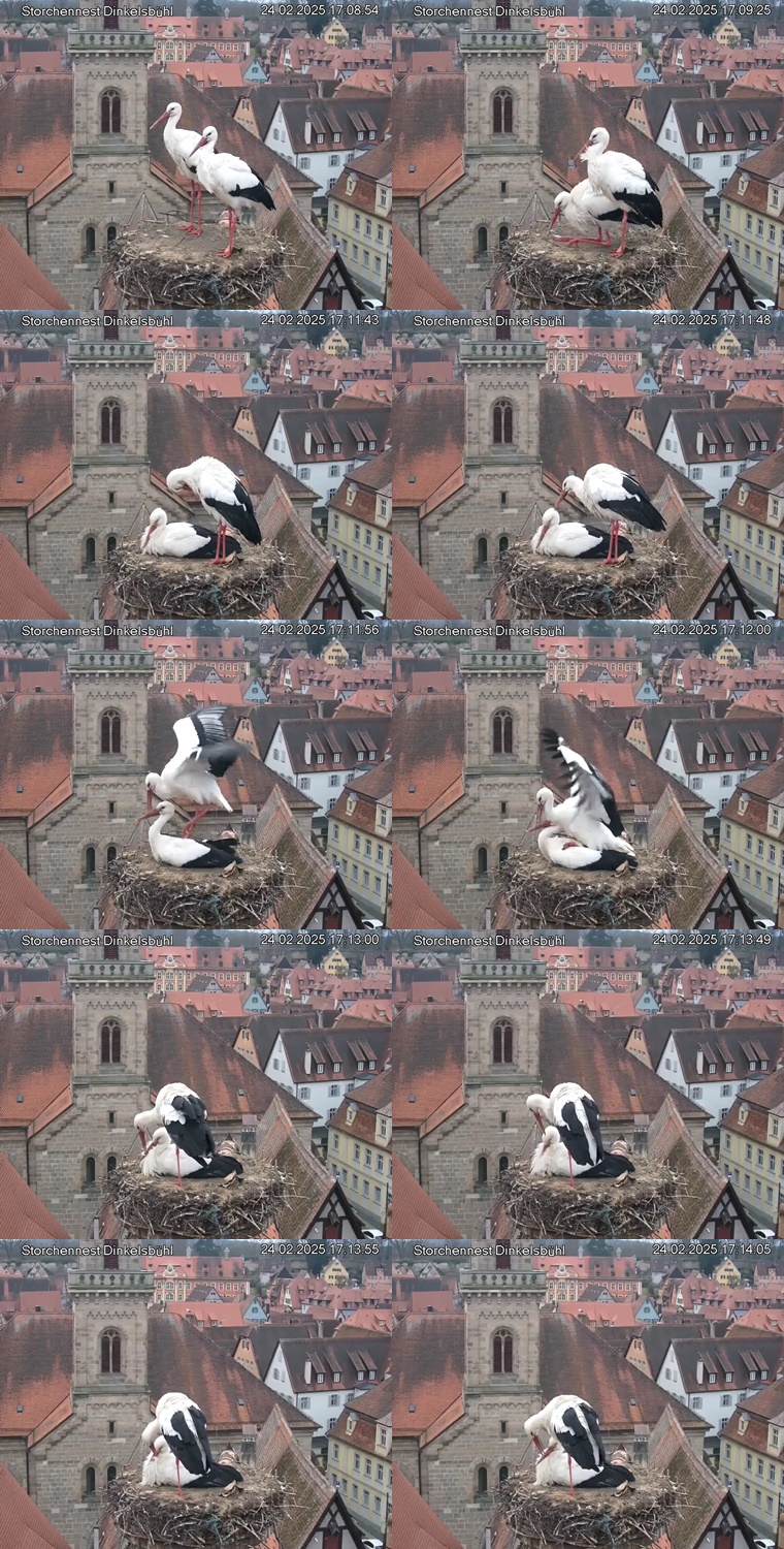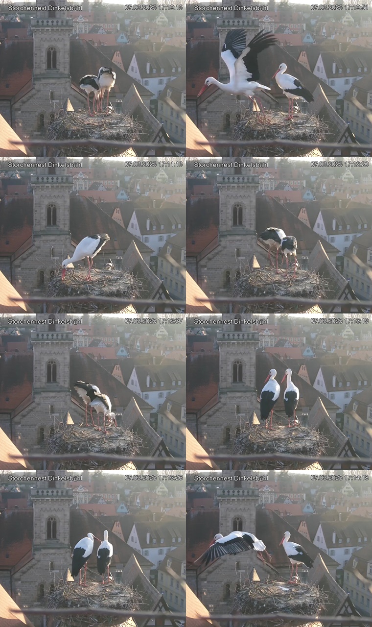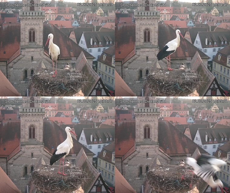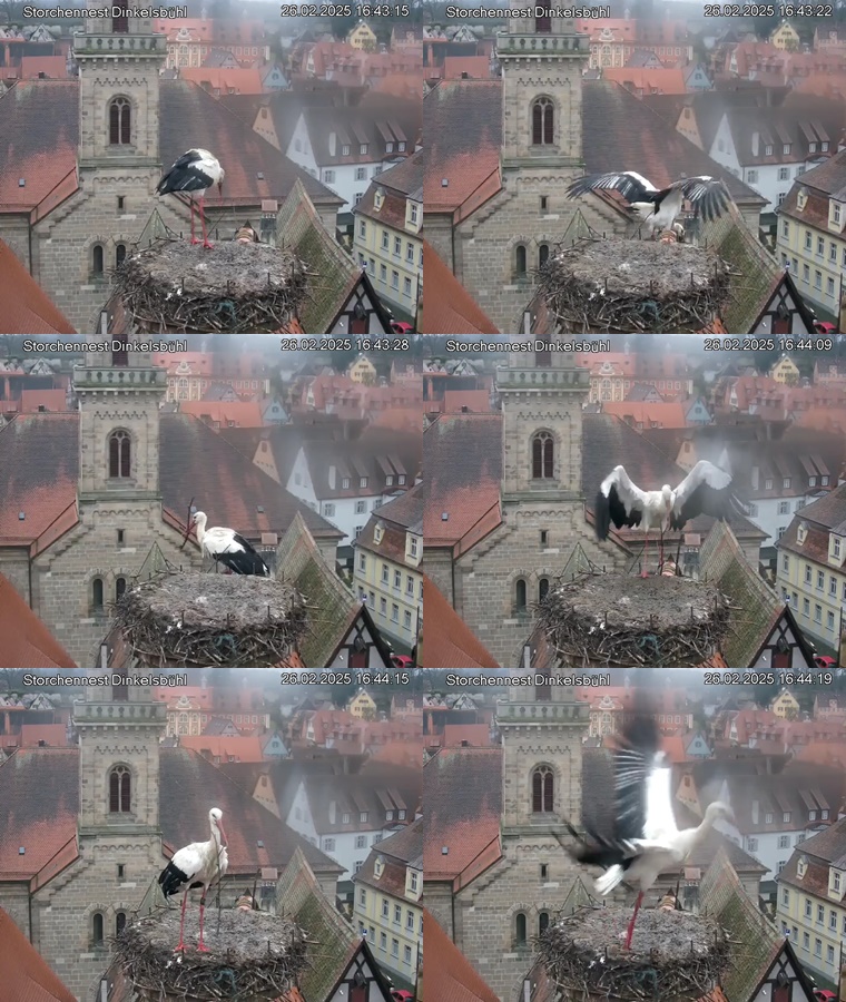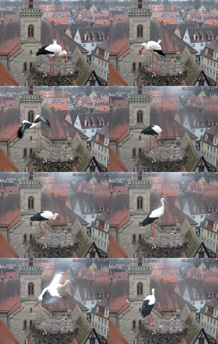 1. Im Nest an der Kamera stehen auch zwei Störche. Nest Nördlingertor und Nest Wörnitztor wurden ja vor Weihnachten entfernt. Doch beide paare fangen wieder an zu bauen..😄