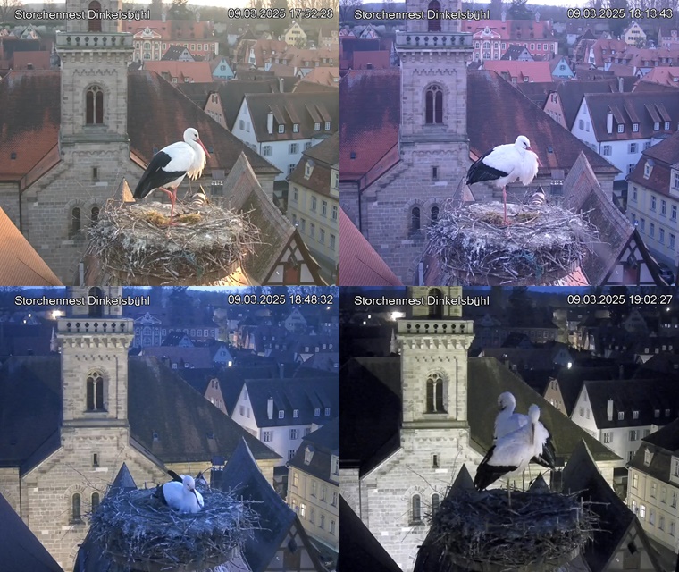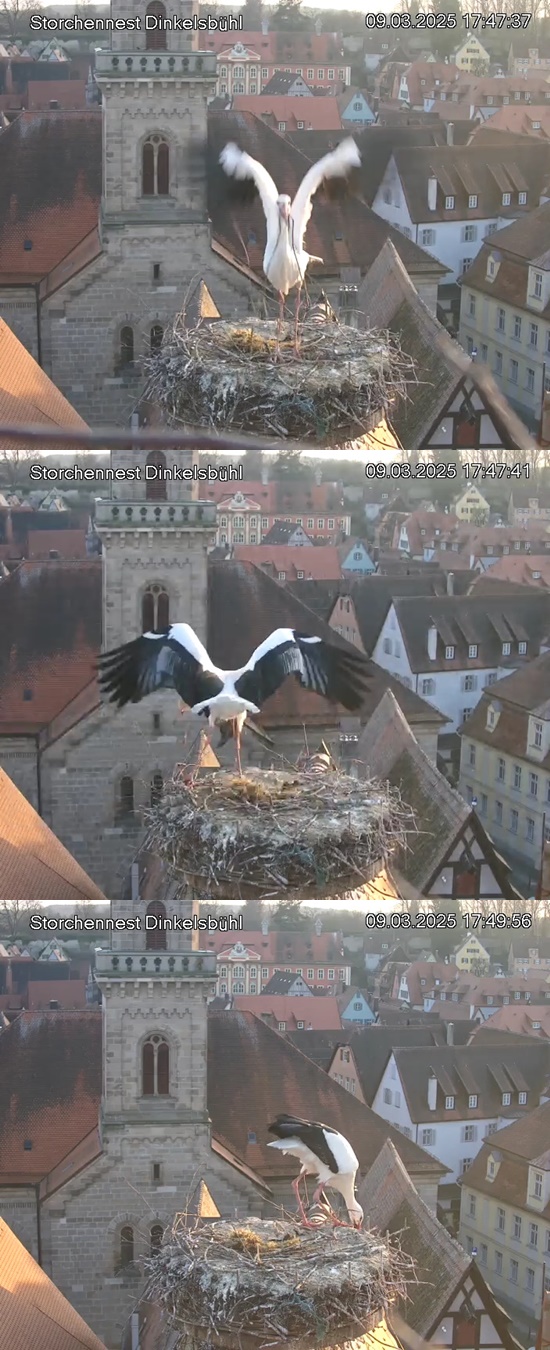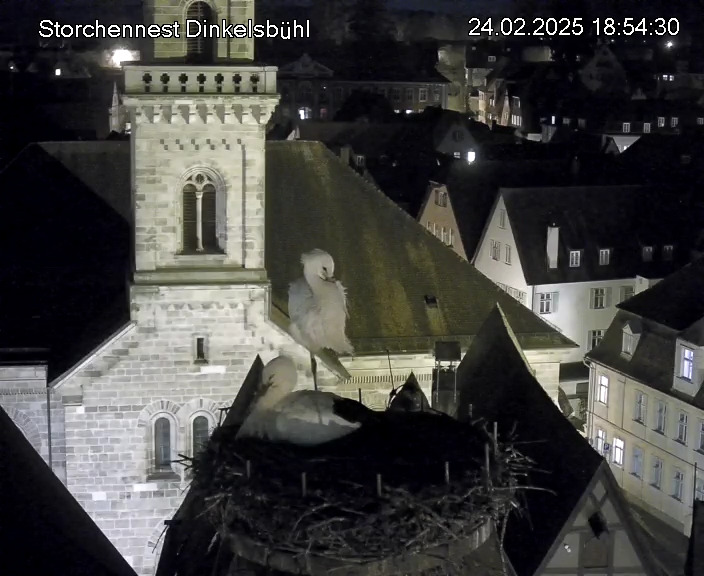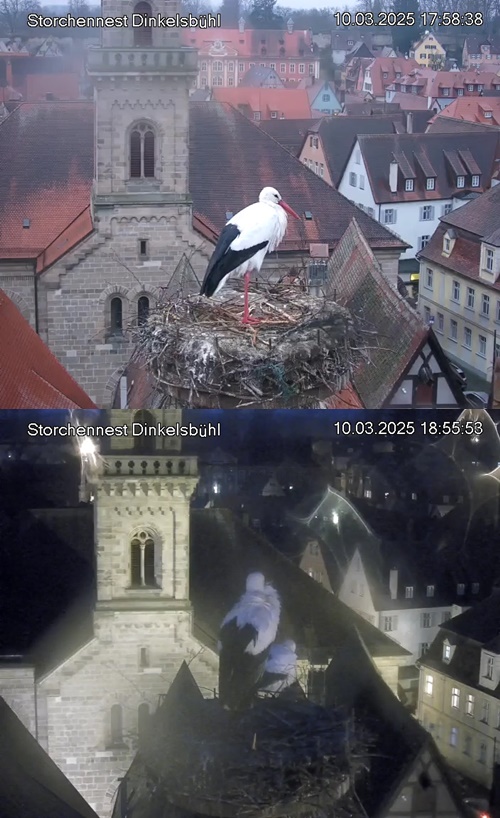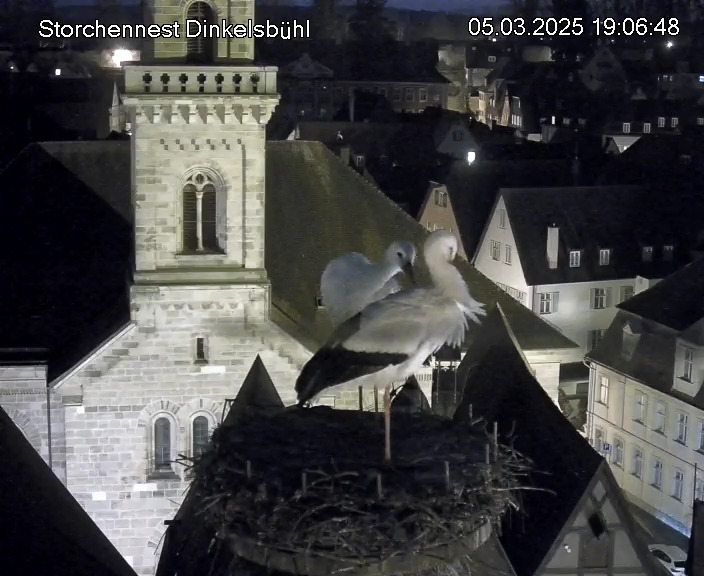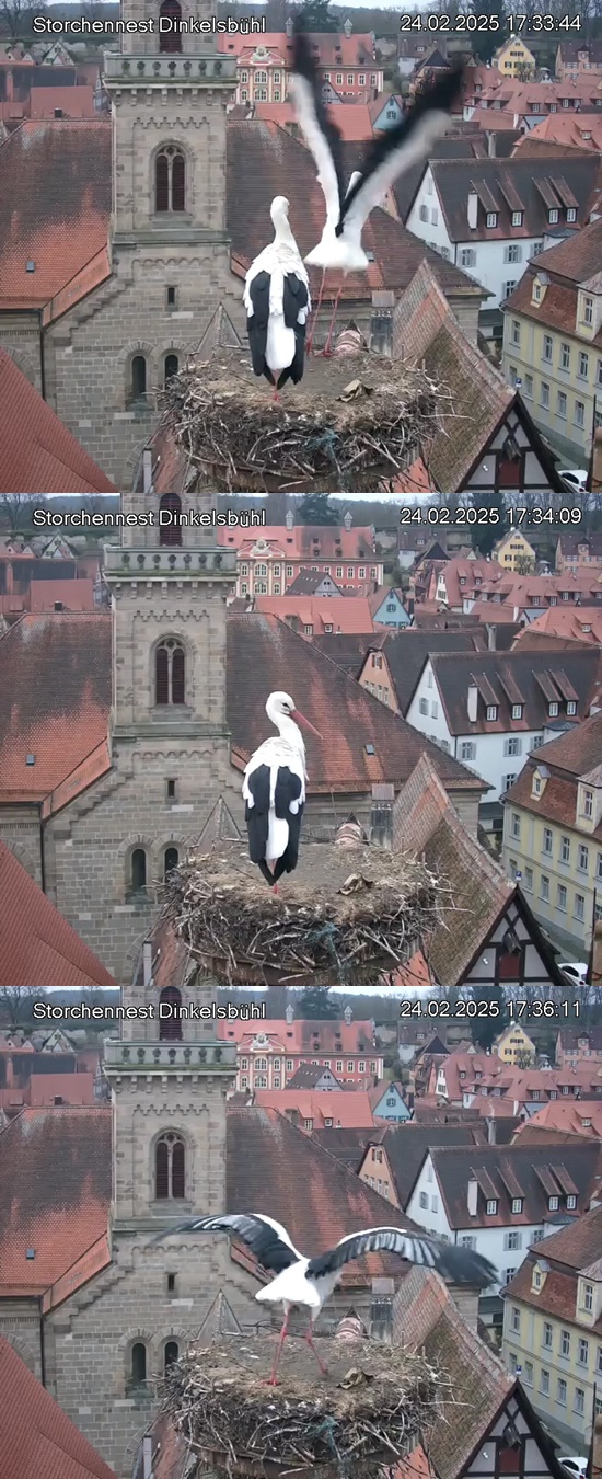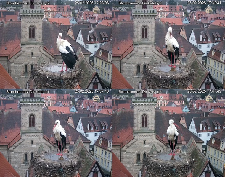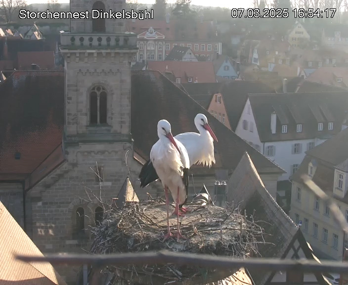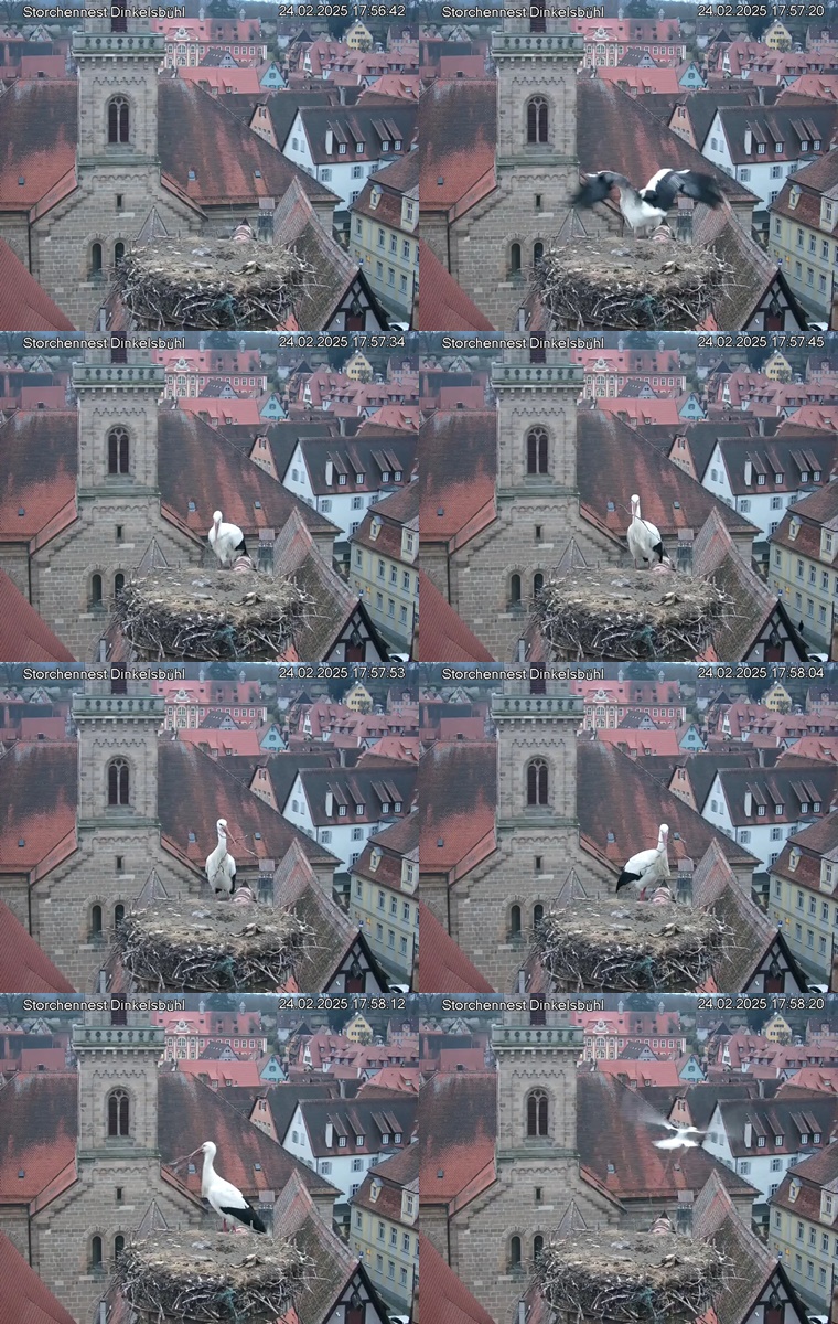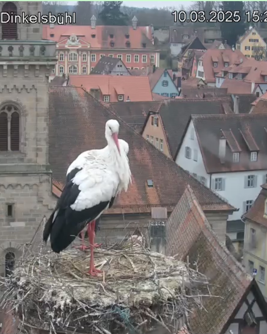 1. Im Nest an der Kamera stehen auch zwei Störche. Nest Nördlingertor und Nest Wörnitztor wurden ja vor Weihnachten entfernt. Doch beide paare fangen wieder an zu bauen..😄