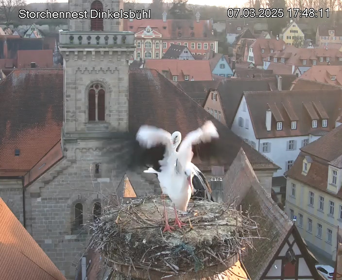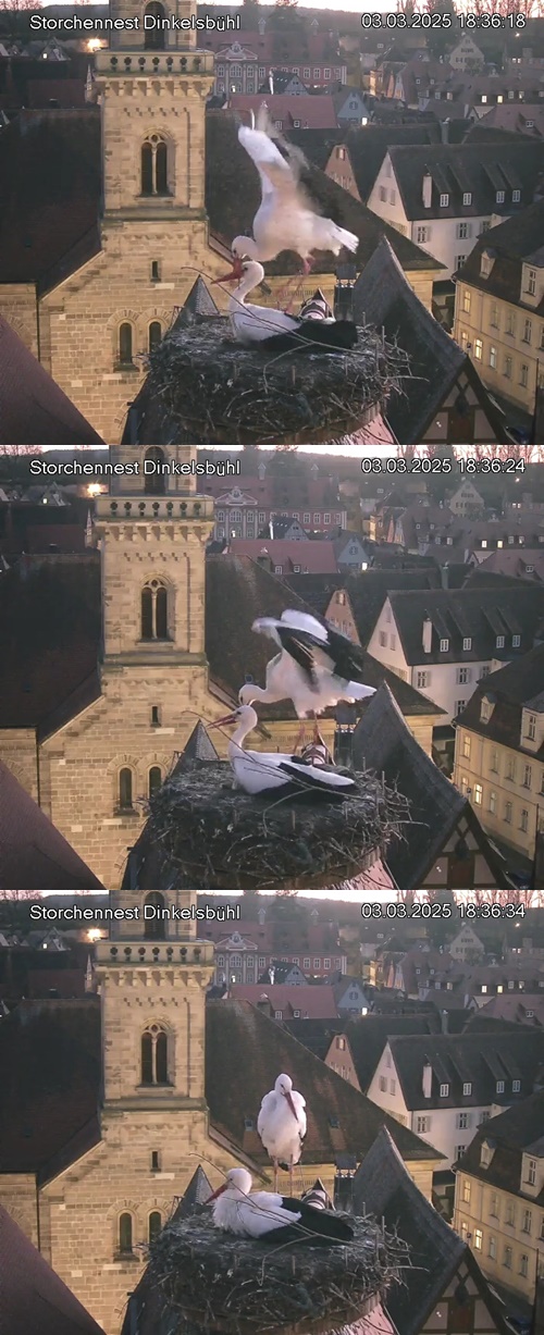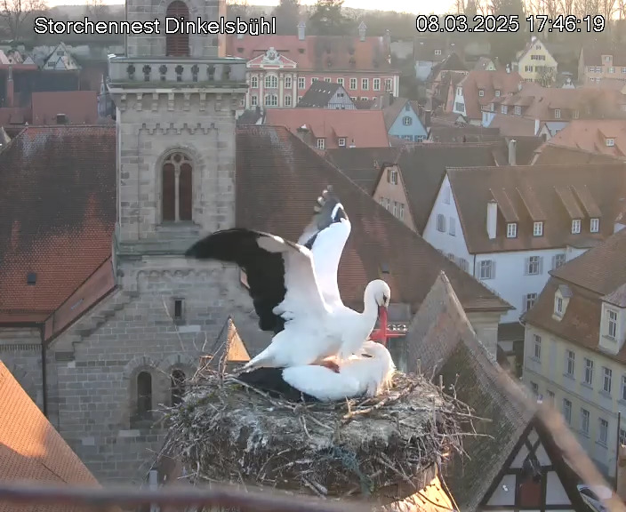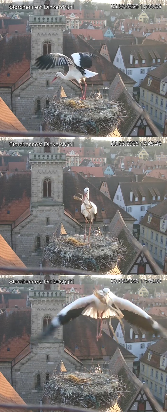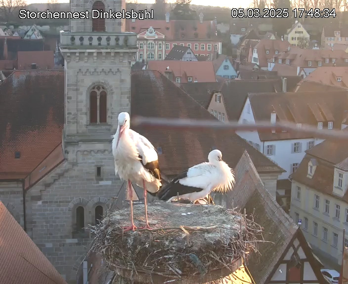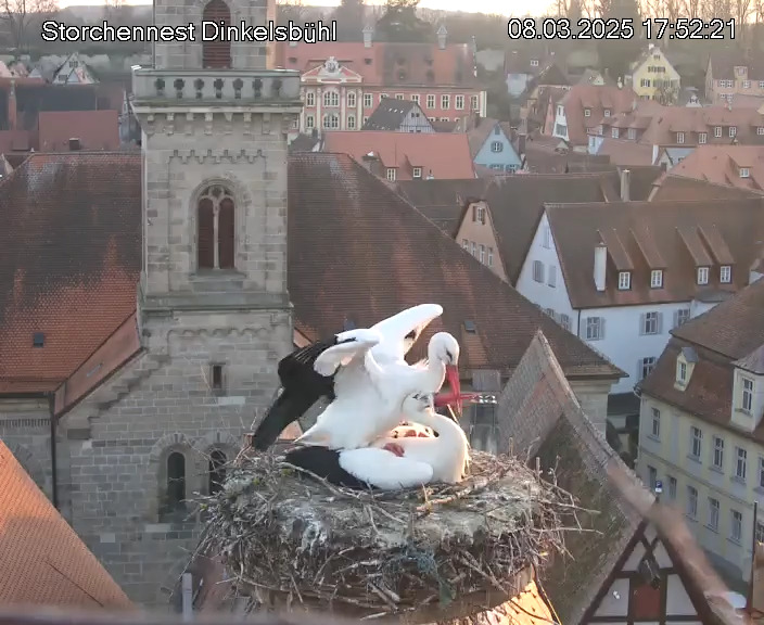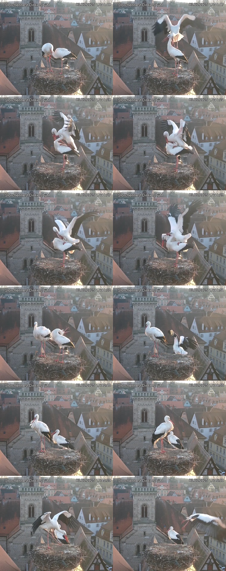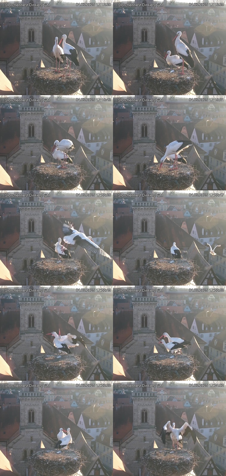 1. Im Nest an der Kamera stehen auch zwei Störche. Nest Nördlingertor und Nest Wörnitztor wurden ja vor Weihnachten entfernt. Doch beide paare fangen wieder an zu bauen..😄
