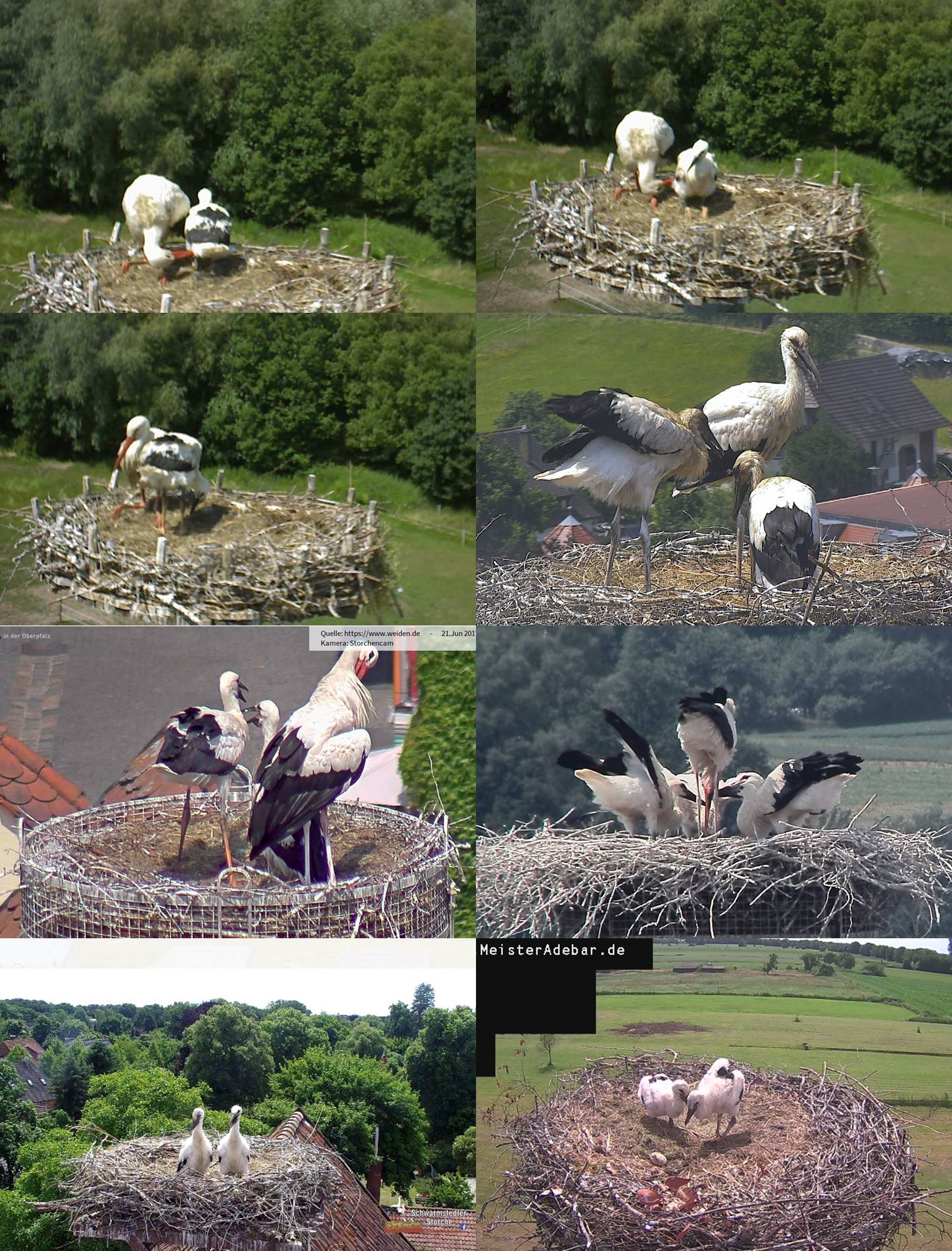 25. Das Otterwischer Störchlein hat ein Geschwisterchen aus Loburg bekommen 🙂 – Bitte aufstellen zum Foto, Ihr Störchlein in Dänemark, Vacha, Bad Waldsee und Gögglingen! 🙂 – Endlich geht die Cam in Ungarn wieder; wow, sind die schwarz geworden! 🙂 . In Polen sind sie noch nicht so weit: