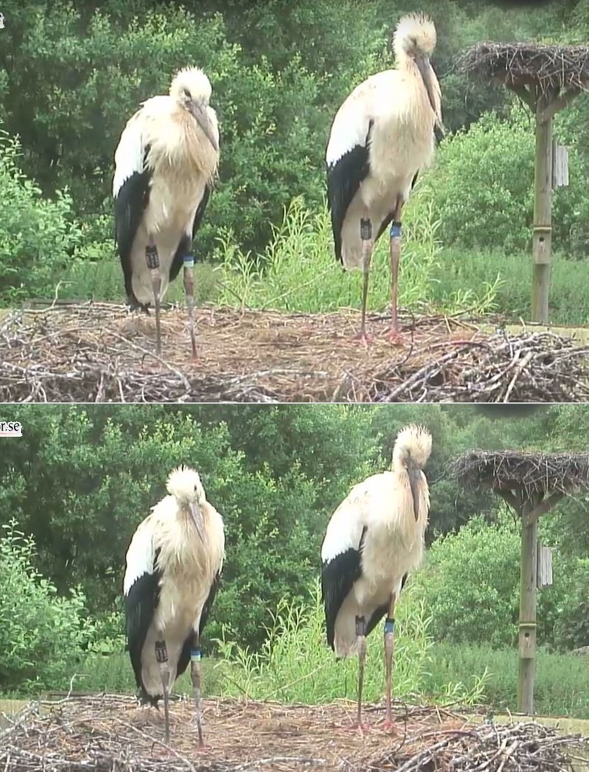 Just in dem Augenblick, als ich die Cam einschalte, drehen die kleinen Schweden wieder interessiert die Köpfe, als ob sie mich sehen könnten 🙂 🙂 – heute morgen nur ein (Alt)Storch im Nördlinger Nest – die beiden Otterwischer – in Erlangen könnten es die beiden Altstörche sein oder doch noch der Jungstorch mit Elternteil – ein Burtenbacher im Nest – die Schwarzstörche in Estland, Polen und Ungarn: