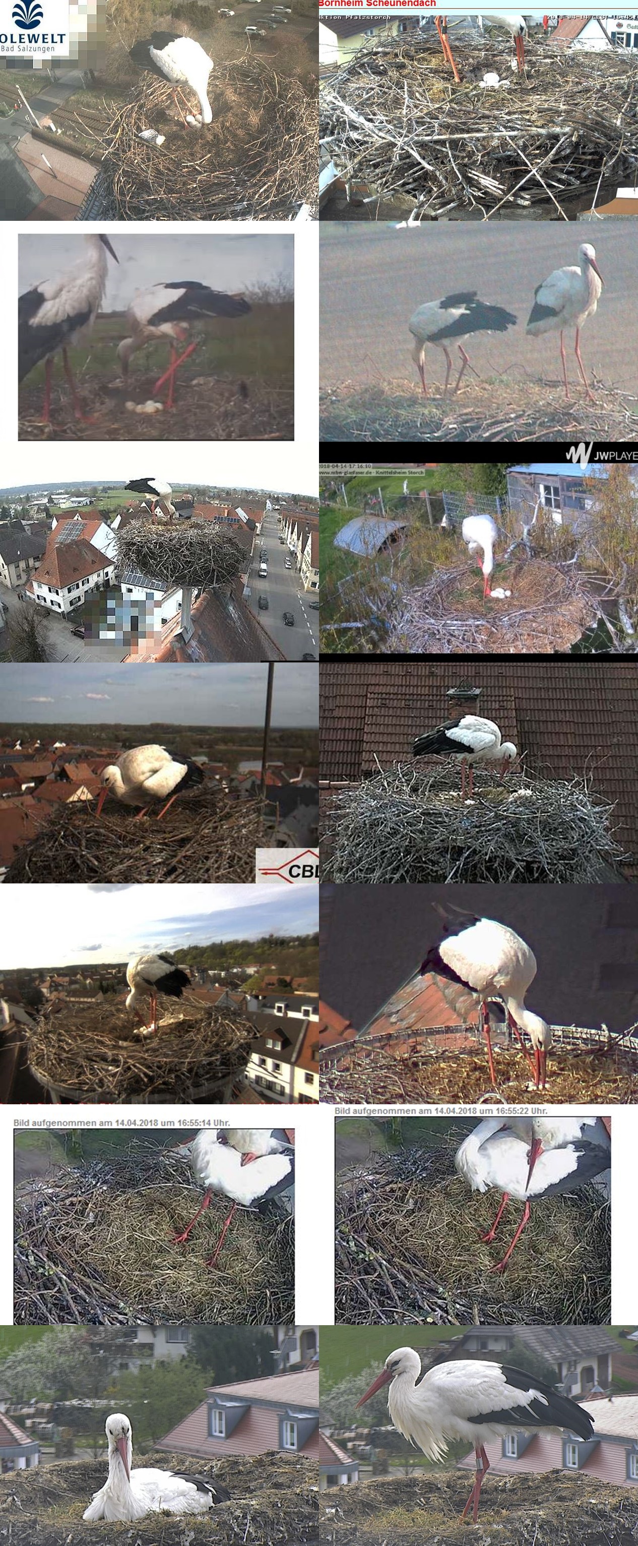6. Nun weitere Nester von heute: Aulendorf, Aurach, Barßel (erst kam superweiche Polsterung für die Jungen, dann kam Wasser (ja! Ich konnte die Tropfen sehen, wow! ), dann kam feste Nahrung 🙂 , Bislich, Bornheim, Dettenheim, Garlitz, Gottenheim und endlich sieht man auch den Nachwuchs in Gunzenhausen 🙂 :