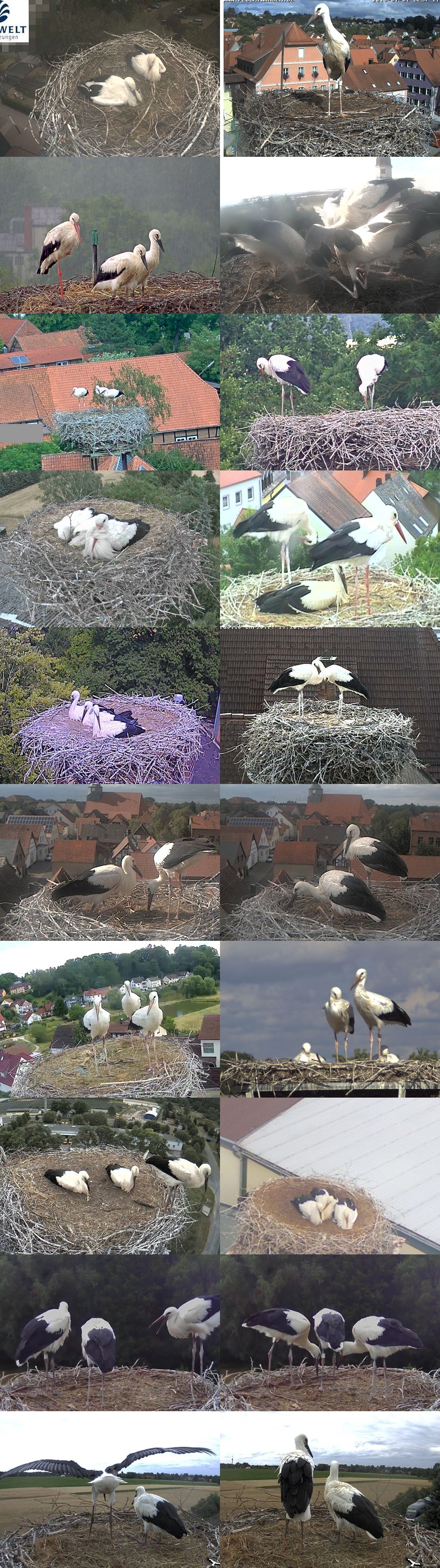 Nittenau, Offenburg (Jungstörche wohl unterwegs), Oranienburg, Otterstadt, Petershagen, die Steiners