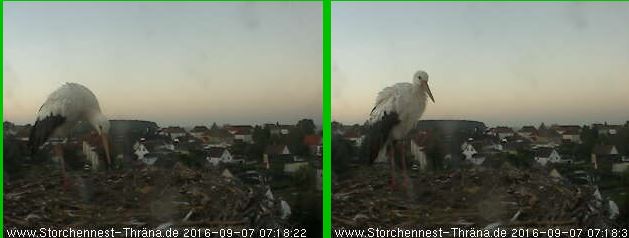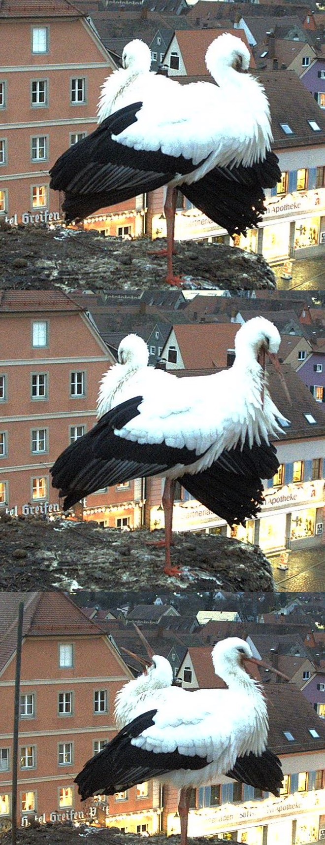 2. Die anderen Störche sind größenteils alle wieder in ihren Nestern – zeigen möchte ich die Feuchtwangener. Sie können so herzhaft gähnen 🙂 🙂