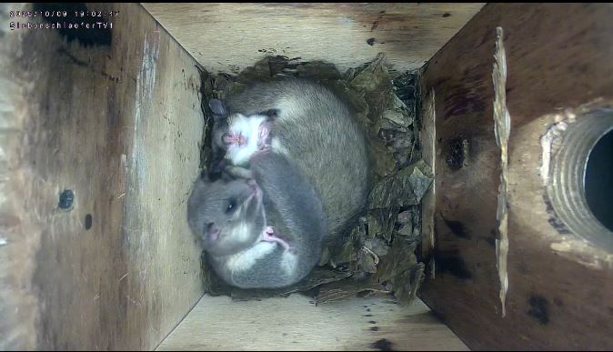 Ach wie süß – der Siebenschläfer aus der 2. Box scheint wohl von Futter zu träumen, jedenfalls bewegt sich sein Mündchen hin und her: 😀 😀