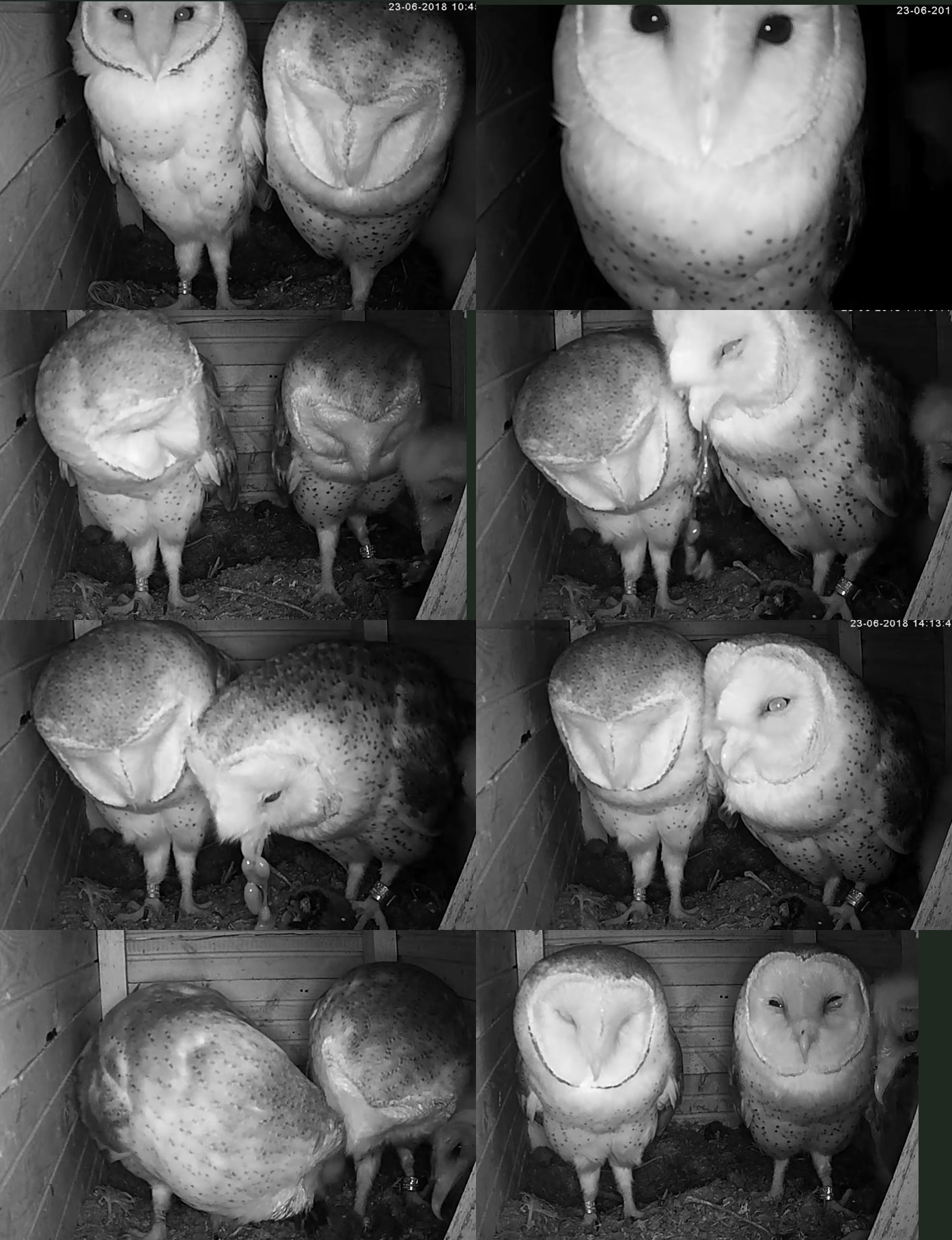 Na, wo sind die Jungen? Aha, wenns Futter gibt, dann erscheint das vorderste im Camewinkel? Mama verleibt sich gerade eine Maus ein, Papa war auch hungrig, hat aber nichts abbekommen – dafür das Junge, welches es gierig hinunterwürgte 🙂 :