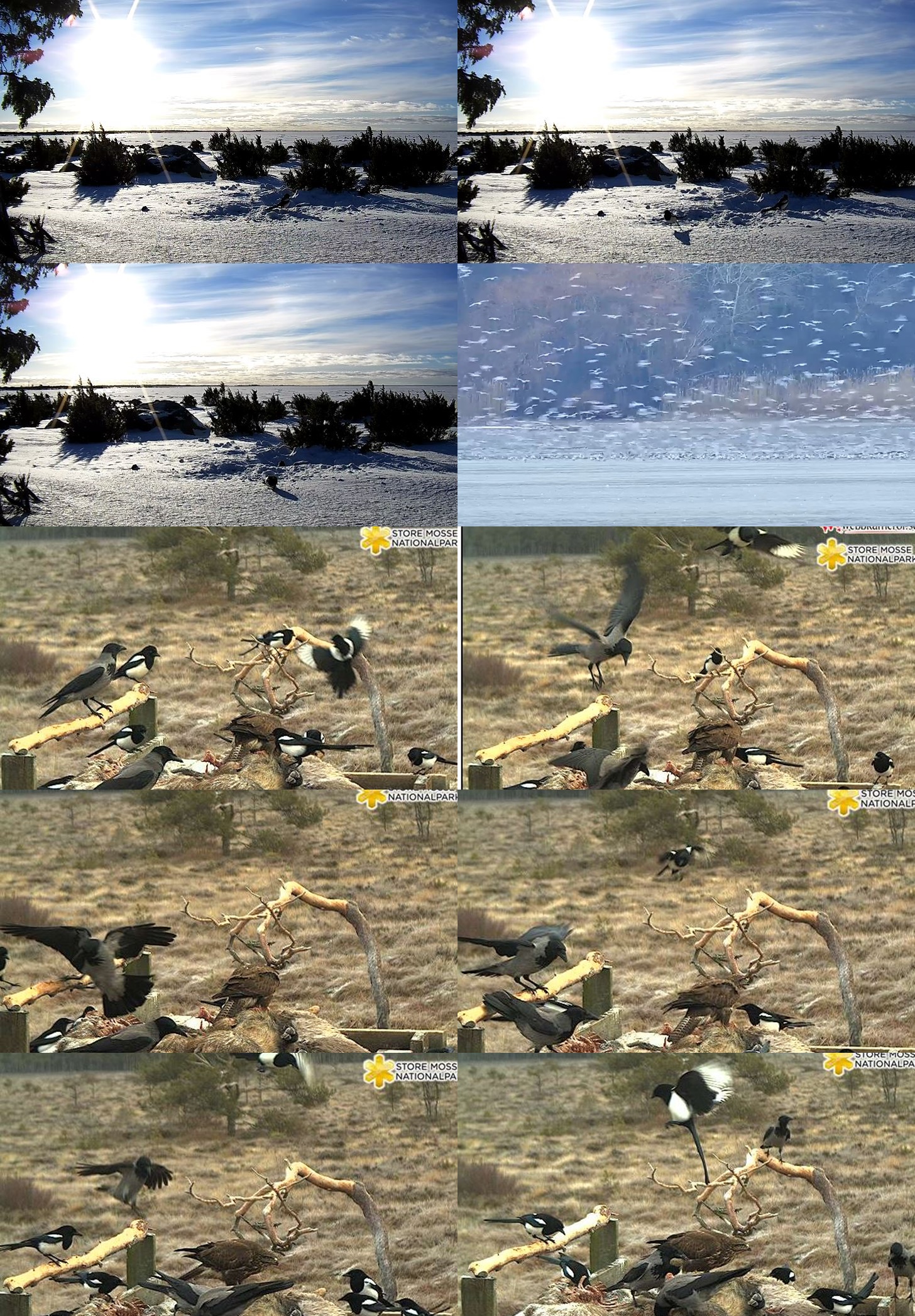 Als erstes die Vogelschar im sonnigen Rumänien und der frostige Futterplatz in Schweden: