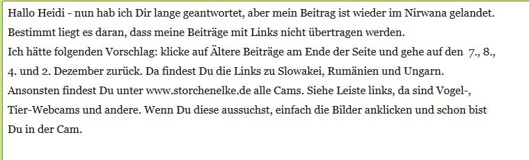 1. Hallo Heidi, das Problem ist, dass das System meine Einträge mit den Links neuerdings ins Nirwana schickt.